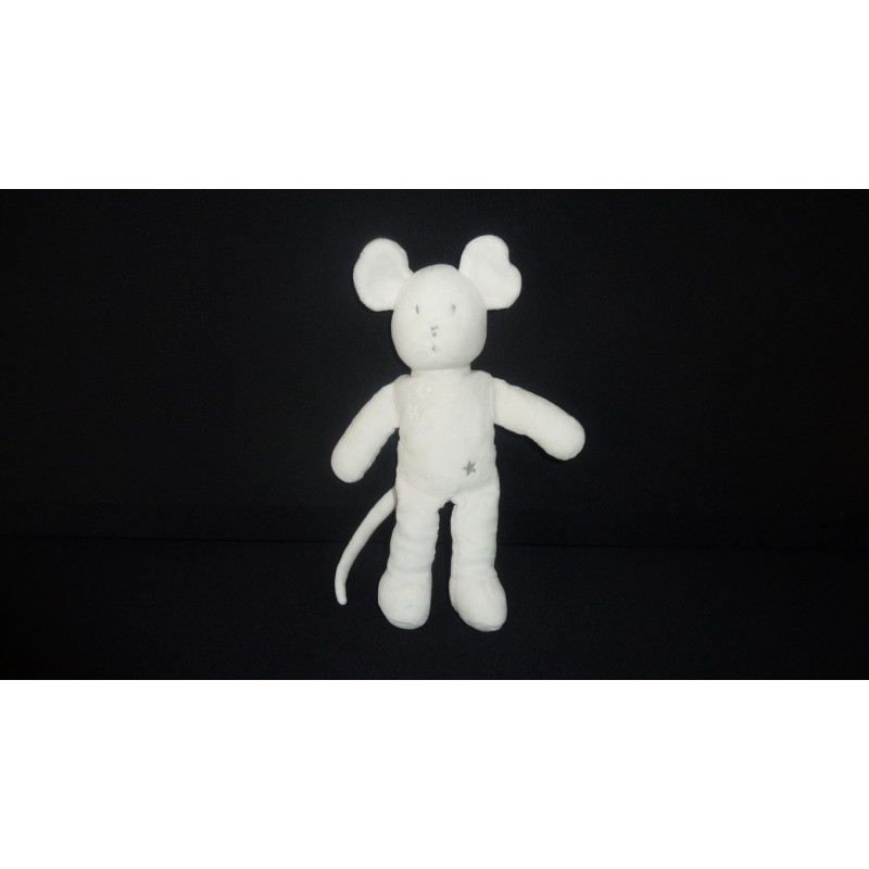 Description du doudou : Doudou peluche souris de 22 cm environ (sans les oreilles), étoiles brodées. Etat : Très bon état (petite tache sur une jambe, rien de méchant), produit original.