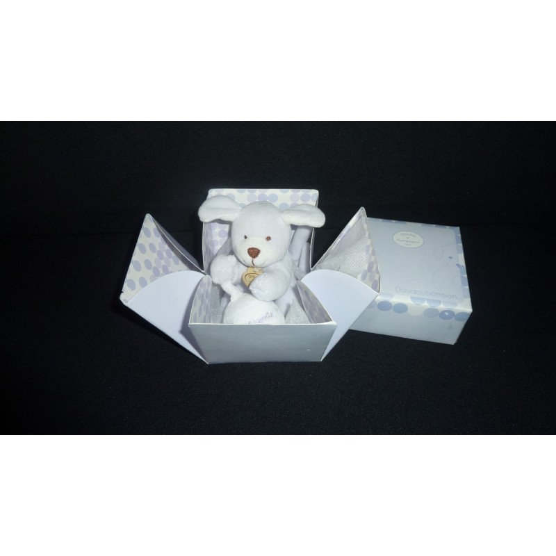 Description du doudou : Doudou chien peluche petit modèle. Doudou super doux. Etat : Neuf dans sa boîte (boîte : un coin abîmé), produit original.