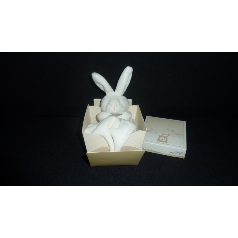 Description du doudou : Doudou peluche lapin avec mouchoir. Doudou super doux. Etat : Neuf. Produit original.
