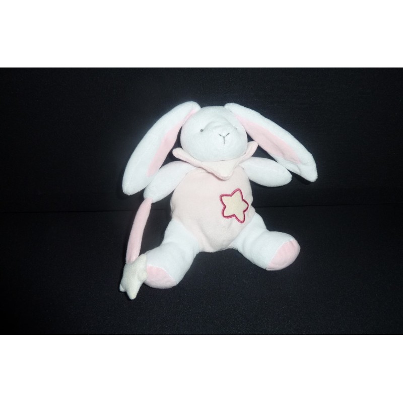 Description du doudou : Doudou lapin tenant une étoile 20 cm environ (sans les oreilles), luminescent. Doudou super doux. Etat : Article neuf (mini accroc sur une oreille dû à l'attache étiquette boutique), sans étiquette boutique, juste lavé pour la vente, jamais utilisé, produit original.