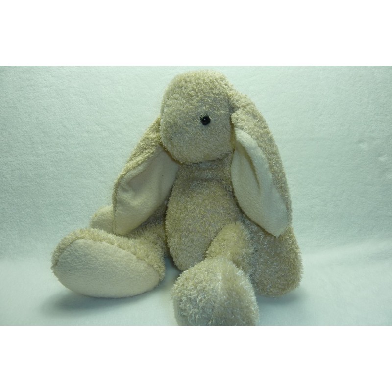 Description du doudou : Doudou peluche lapin de 40 cm environ, billes au popotin pattes et oreilles. Coloris : beige, écru. Doudou super doux. Etat : Comme neuf. Produit original. DOUDOU DIFFICILE A TROUVER