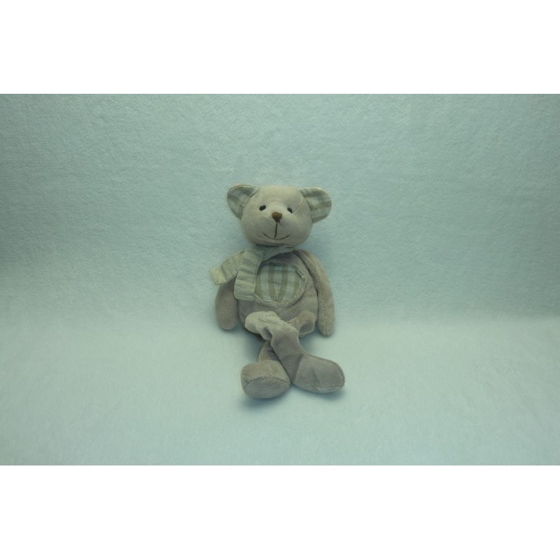 Description du doudou : Doudou peluche ours de 32 cm environ, billes dans le ventre et les pattes. Coloris : marron, écharpe beige, tissu vichy marron beige. Doudou super doux. Etat : Comme neuf. Produit original. DOUDOU DIFFICILE A TROUVER