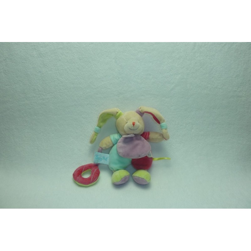 Description du doudou : Doudou peluche lapin de 21 cm environ, matière bruissante. Coloris : vert, framboise, turquoise. Etat : Neuf sans étiquette boutique. Produit original. DOUDOU DIFFICILE A TROUVER