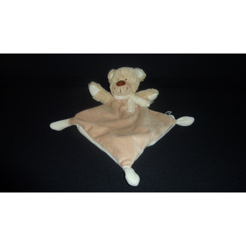 Description du doudou : Doudou plat ours, forme triangle. Coloris : marron et écru au verso. Doudou super doux. Etat : Neuf sans étiquette boutique, produit original.