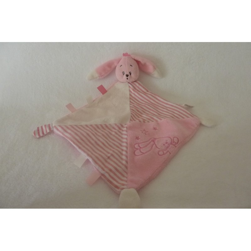 Description du doudou : Doudou plat lapin, forme losange bordé d'étiquettes. Doudou super doux. Etat : Comme neuf. Produit original.