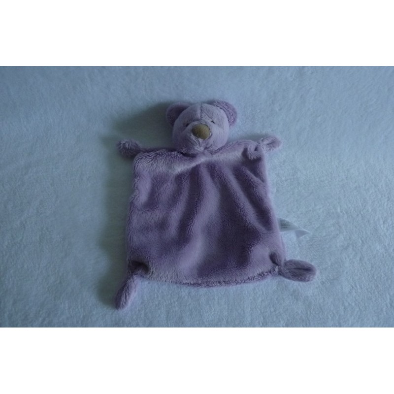 Description du doudou : Doudou plat ours. Coloris : mauve. Doudou super doux. Etat : Neuf sans étiquette boutique. Produit original. DOUDOU DIFFICILE A TROUVER
