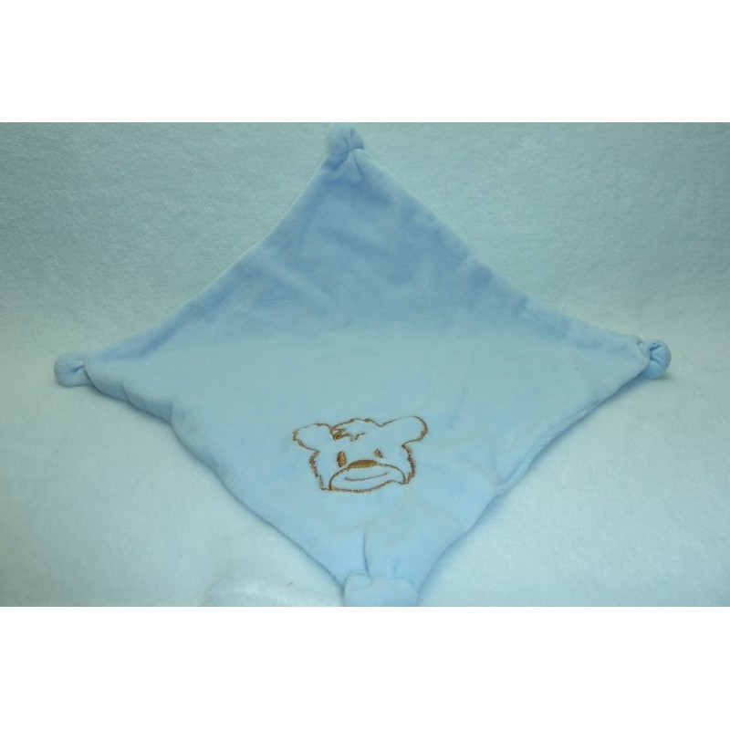 Description du doudou : Doudou plat ours. Coloris : bleu, ourson brodé en marron. Doudou super doux. Etat : Comme neuf. Produit original. DOUDOU DIFFICILE A TROUVER
