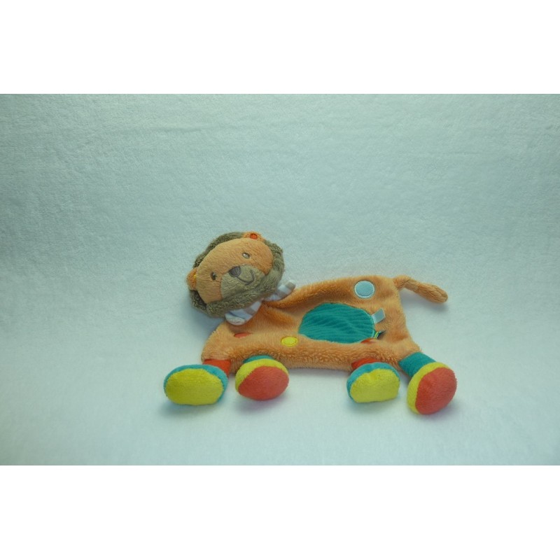 Description du doudou : Doudou plat lion Nicotoy Simba Toys, 19 cm environ de hauteur. Coloris : orange, marron, turquoise. Doudou super doux. Etat : Très bon état. Produit original. DOUDOU DIFFICILE A TROUVER