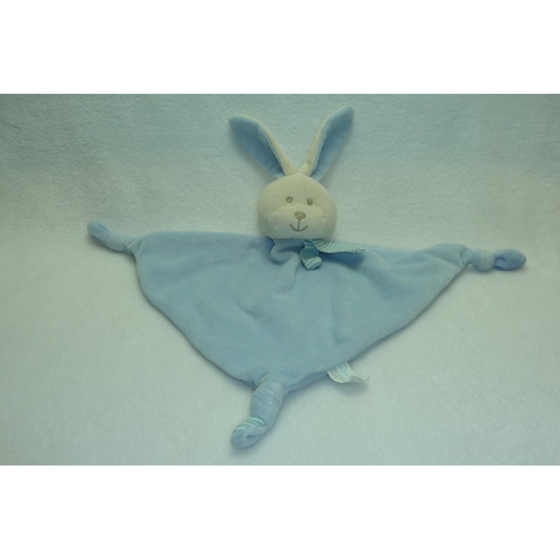 Description du doudou : Doudou plat forme triangle de 40 cm environ de longueur oreilles comprises, 3 nouages. Coloris : bleu, porte une écharpe rayée. Etat : Comme neuf. Produit original. DOUDOU DIFFICILE A TROUVER