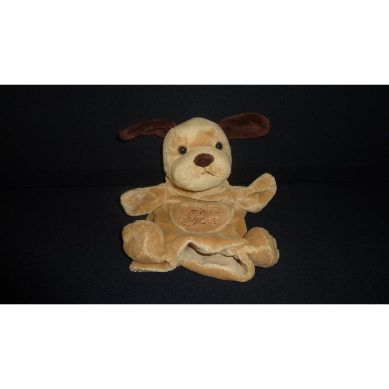 Description du doudou : Doudou marionnette chien, petite poche sur le devant. Doudou super doux. Etat : Très bon état (petit accroc et étiquette de la marque coupée). Produit original.