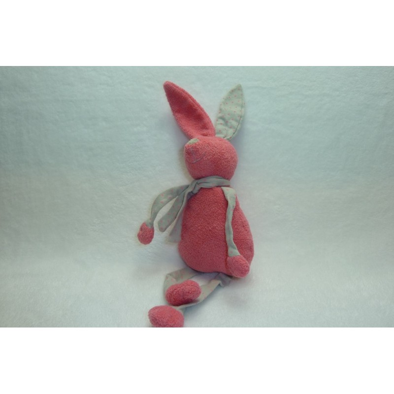 Description du doudou : Doudou peluche lapin de 32 cm environ (sans les oreilles), billes au popotin. Coloris : rose, gris à pois rose. Doudou super doux. Etat : Comme neuf. Produit original. DOUDOU DIFFICILE A TROUVER