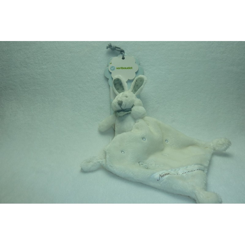 Description du doudou : Doudou peluche lapin. Coloris : blanc motifs étoiles. Doudou super doux. Etat : Neuf. DOUDOU DIFFICILE A TROUVER