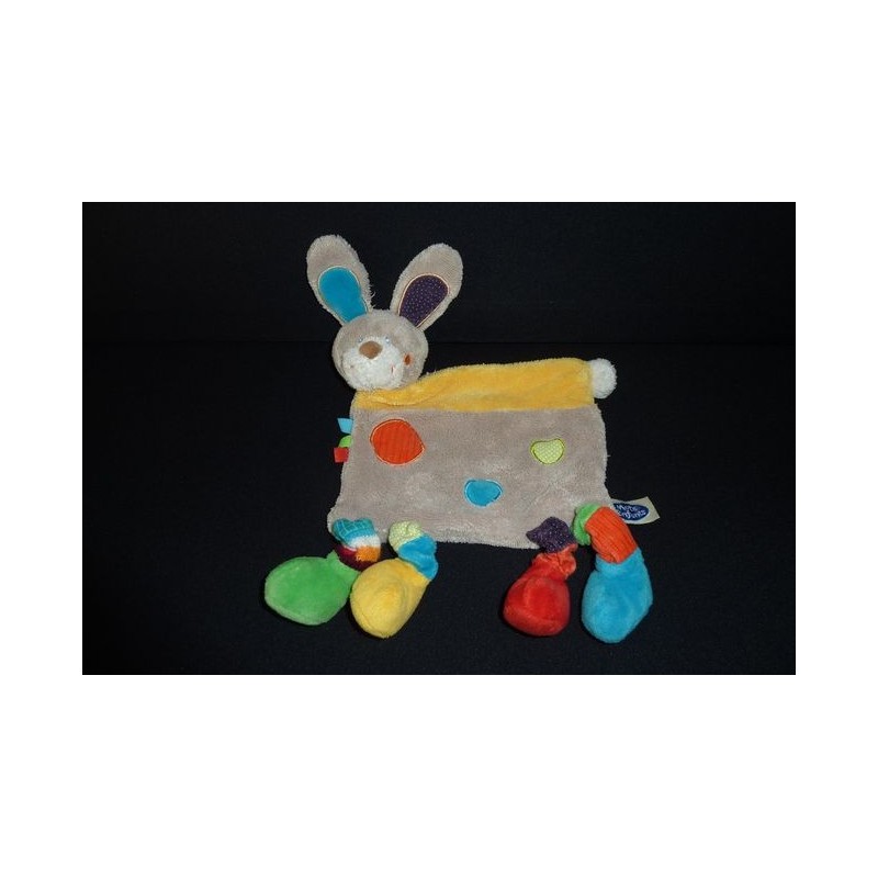Description du doudou : Doudou plat lapin Mots d'Enfants, 34 cm environ de longueur. Coloris dominant : jaune, marron, multicolore, ronds. Doudou super doux. Etat : Comme neuf. Produit original. DOUDOU DIFFICILE A TROUVER