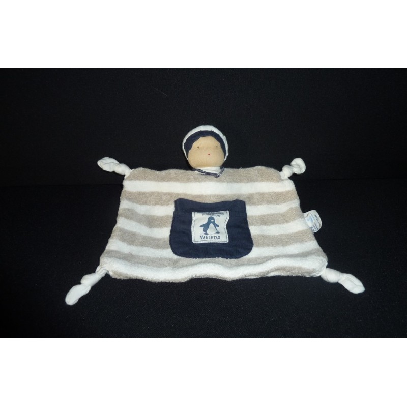 Description du doudou : Doudou plat en coton bio, 4 nouages. Doudou super doux. Etat : Comme neuf. Produit original.