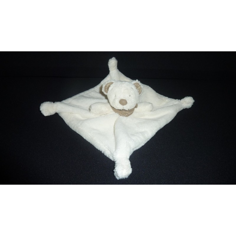 Description du doudou : Doudou plat ours, écharpe et intérieur des oreilles : imitation daim. Doudou super doux. Etat : Comme neuf (étiquette de la marque coupée), produit original.