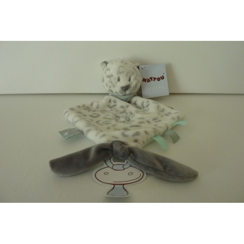 Description du doudou : Doudou plat léopard, forme losange, attache tétine. Doudou super doux. Etat : Neuf. Produit original