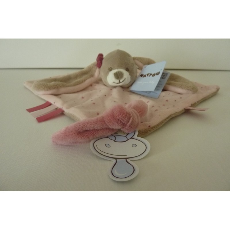 Description du doudou : Doudou plat lapin, attache tétine. Doudou super doux. Etat : Neuf. Produit original