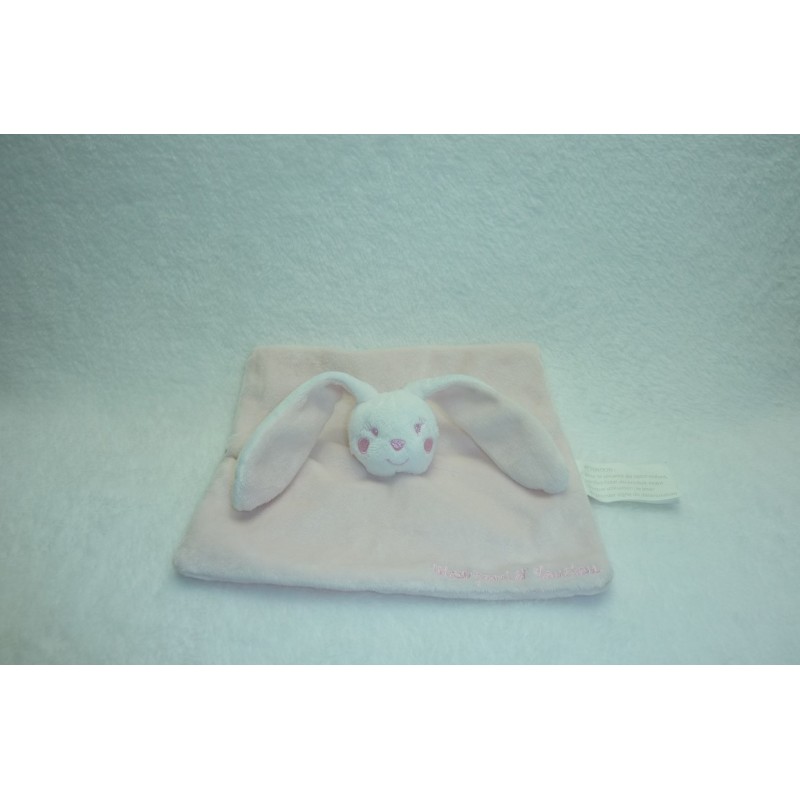 Description du doudou : Doudou plat lapin, coloris : rose pâle, intérieur des oreilles : blanc. Doudou super doux. Etat : Comme neuf. Produit original.