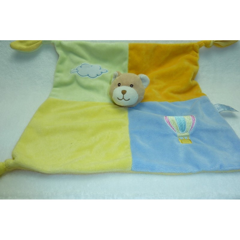 Description du doudou : Doudou plat ours, 4 nouages, nuage et mongolfière brodés. Doudou super doux. Etat : Très bon état (bouloches au verso). Produit original. DOUDOU DIFFICILE A TROUVER