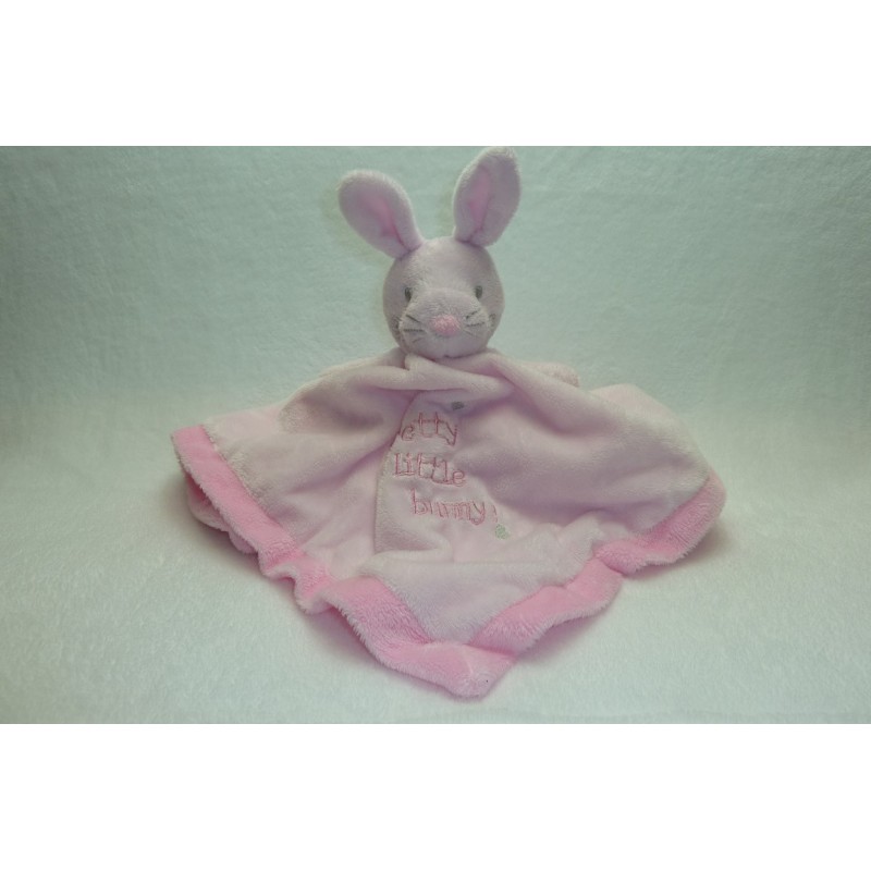 Description du doudou : Doudou plat lapin. Coloris : rose, Pretty little bunny brodé. Doudou super doux. Etat : Comme neuf (étiquette de la marque coupée). Produit original. DOUDOU DIFFICILE A TROUVER