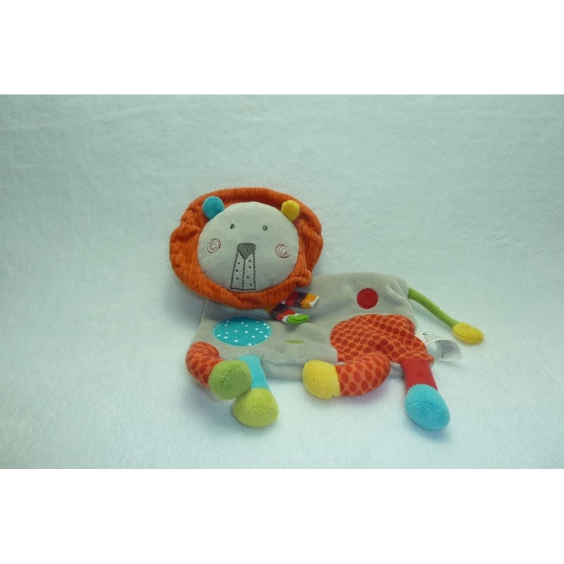 Description du doudou : Doudou plat lion Nicotoy, 25 cm environ de longueur. Coloris : Multicolores. Doudou super doux. Etat : Neuf sans étiquette boutique (petit défaut d'origine sur le bout de la queue). Produit original. DOUDOU RARE
