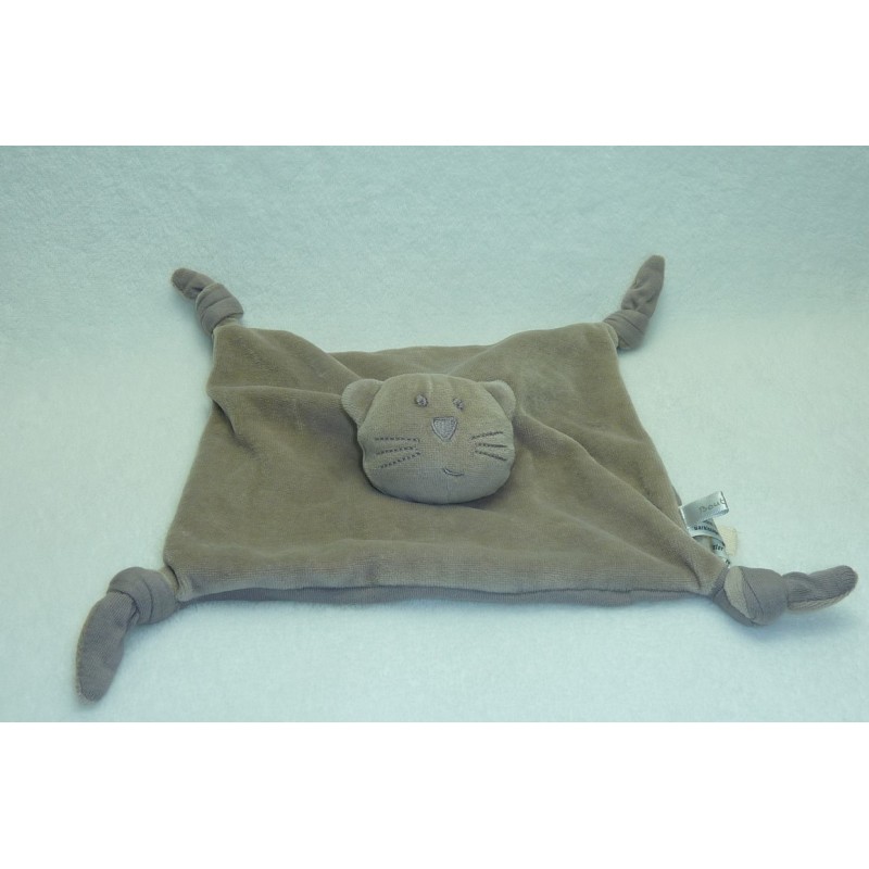 Description du doudou : Doudou plat chat de 20x18 cm environ, 4 nouages. Coloris :taupe foncé. Etat : Comme neuf. Produit original. DOUDOU DIFFICILE A TROUVER