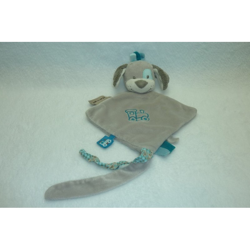Description du doudou : Doudou plat chien forme losange de 25 cm environ sans compter le nouage. Coloris principal : marron, motif locomotive. Doudou super doux. Etat : Très bon état. Produit original. DOUDOU DIFFICILE A TROUVER