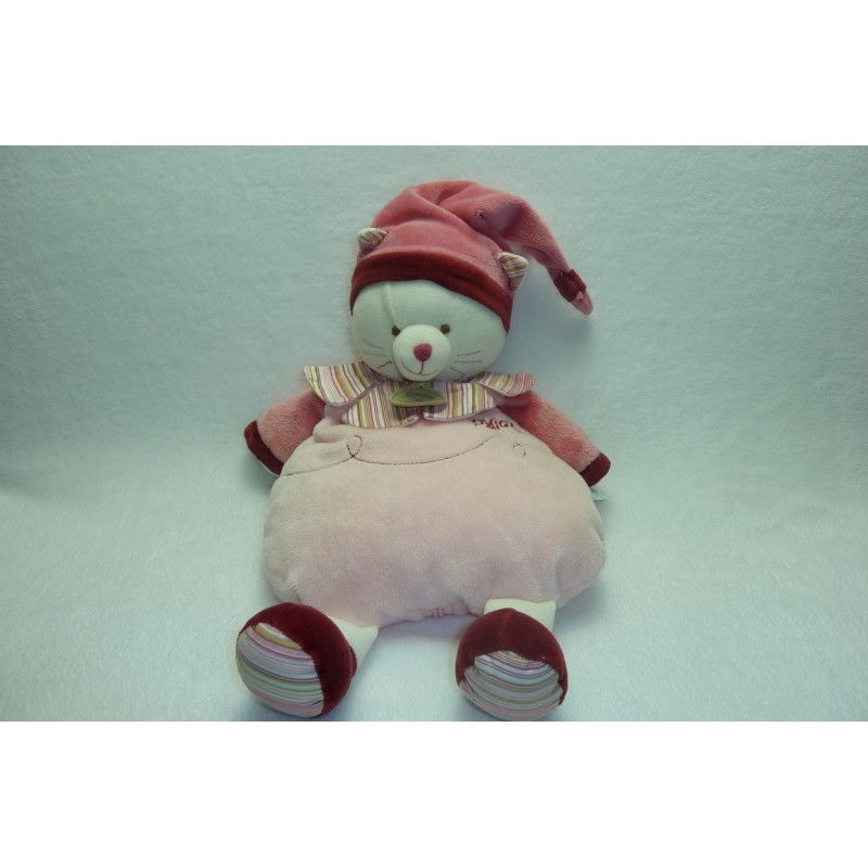 Description du doudou : Doudou peluche range pyjama de 43 cm environ (sans compter le bonnet), fermeture éclair au dos. Coloris : rose, bordeaux, "Mon pyjama" brodé. Etat : Comme neuf (étiquette d'informations coupée). Produit original. DOUDOU DIFFICILE A TROUVER